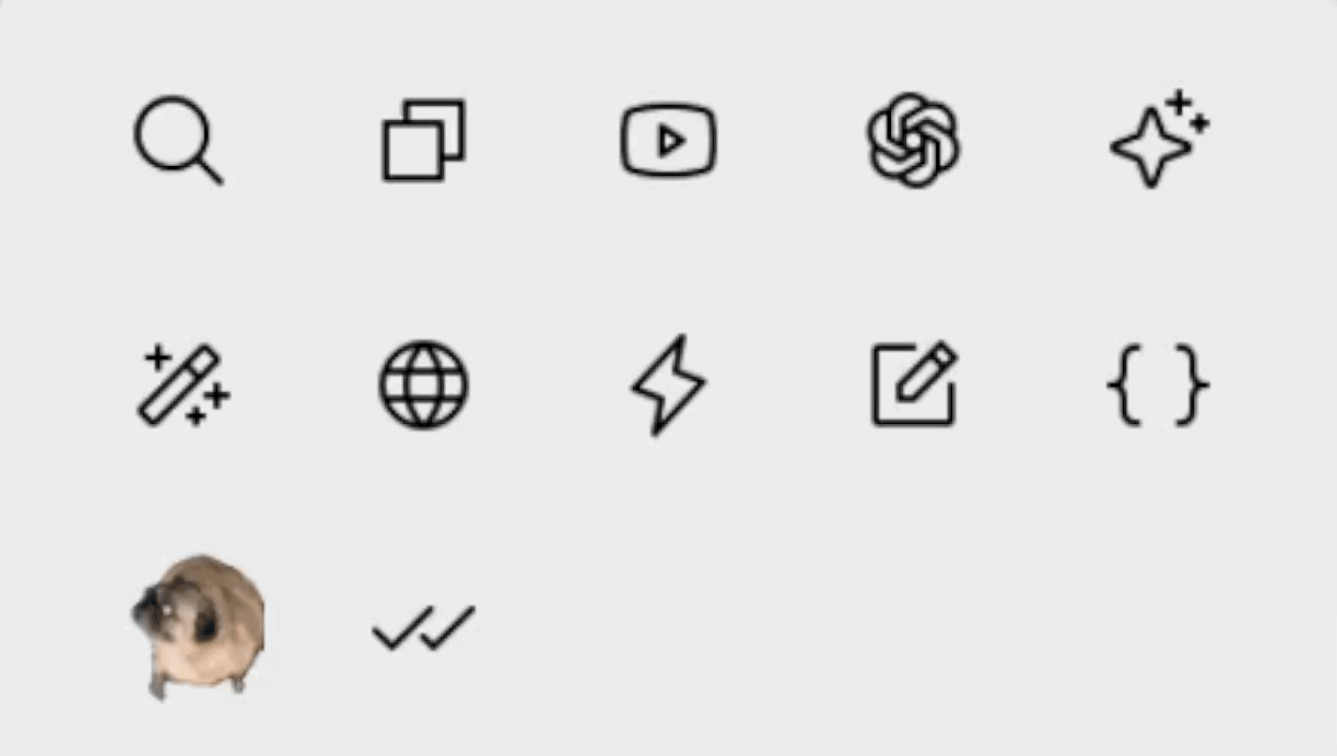 Create your own actions with URLs, shell scripts, or Shortcuts.